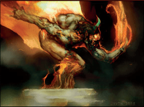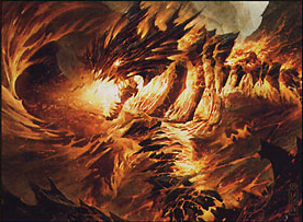 When did this fascination with mono-Red begin? It was during a Zendikar Prerelease Sealed event and I was playing my third round, going 1-1 over my first two rounds with my R/G deck. I needed a win for any hope of getting monies. I lost Game 1 to a sneaky Windborne Charge, so I was steamed. I swore it would never happen again. The board during the second game had grown to a huge stalemate, and I needed an out. I ripped the next card off the top of my deck: Obsidian Fireheart. TEH FIREBEAST (as I shall call him) single-handedly won me that game. My opponent died by losing 5 life in one turn to the burninating whims of TEH FIREBEAST. Spoiler Alert: I won Game 3 after.
