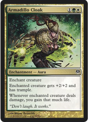 Yes, not only do you get to be like Brian Kibler and play Rith, but also get to use Armadillo Cloak as well. New art does help, but there will always be a foil Invasion and FNM version for you to pimp out your deck. If you’ve never got one, then this is your chance (Please note: it doesn’t say lifelink, there’s a reason for that). Likewise, if you have never played with Coalition Relic, now’s your chance. Don’t dismiss it at first as saying it’s weak. Give it a few times and see how powerful it really is. Where’s Fertile Ground on this list? It’s been reprinted 20 times; if you don’t have one, ask a friend.