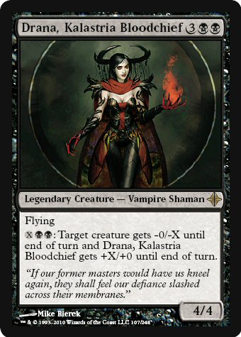 I’m kind of surprised you didn’t mention Xiahou Dun, the One-Eyed in your list of good monoblack generals. As for Drana, she’s cool, but I think I’ll be sticking with Chainer. (Editor’s Note: Linked to card for clickability)