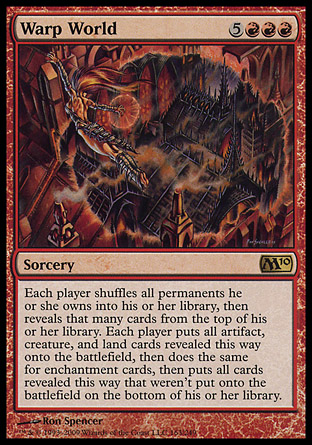 So from the time I decided to make a Wort EDH deck, I always knew I was going to look at putting Warp World in it. At first, when I was looking at a more instant- and sorcery-driven build, Warp World wasn’t a great piece to include: all those non-permanents were whiffs if I warped into them. As the deck grew more creature-heavy, though (especially “enters the battlefield”-creature-heavy), my all-time favorite red sorcery started looking more and more appetizing.